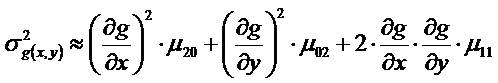 The two random variables can have any joint distribution, no assumption is made. The approximation is consistent to second order in the joint central moments. The equation is very useful to model the variance of nonlinear estimators such as a three beam bearing interpolator or an interesting detection or classification test statistic.
